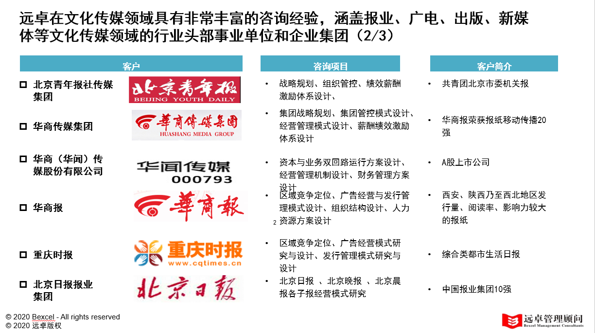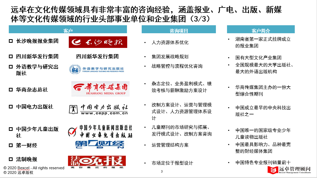 - 報業(yè) 報紙出版、發(fā)行、經(jīng)營 期刊出版、發(fā)行、經(jīng)營 - 出版 圖書出版、發(fā)行、經(jīng)營 音像制品出版、發(fā)行、經(jīng)營 - 廣電、影視 影視投資、制作、經(jīng)營 院線 有線電視網(wǎng)運營 - 傳媒經(jīng)營、廣告 廣告代理、制作 廣告經(jīng)營 傳媒文化投資 物流 - 新媒體 數(shù)字電視 移動媒體 互聯(lián)網(wǎng) - 文體產(chǎn)業(yè) 演出 賽事 場館運營 - 旅游 景區(qū) 度假酒店 旅行社