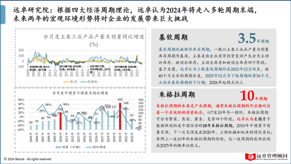 遠(yuǎn)卓洞察:遠(yuǎn)卓研究院跟蹤、持續(xù)研究和預(yù)測(cè)經(jīng)濟(jì)周期理論多年,歷史上都曾有過較高的準(zhǔn)確性。站在2024年的時(shí)點(diǎn),遠(yuǎn)卓認(rèn)為:2025年將是各類經(jīng)濟(jì)周期預(yù)測(cè)的底部區(qū)域,而從2026年開始,全球及中國(guó)經(jīng)濟(jì)都將迎來“短-中-長(zhǎng)”周期的全面回暖。
