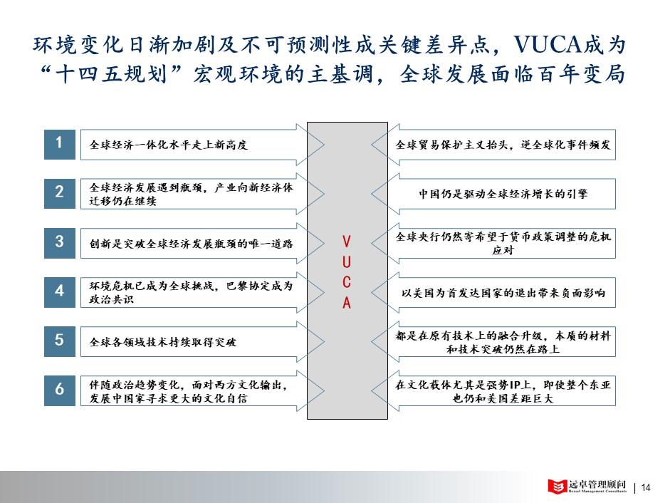 1、 重視變化:無論是內(nèi)部、外部的環(huán)境巨變,將會是遠卓十四五規(guī)劃分析的重點。